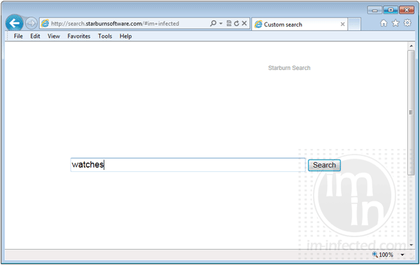 Search.starburnsoftware.com or simply known as Starburn Search is an adware program that will modify the home page of the affected computer. This adware will replace the default home page with a Custom Search box bearing the address search.starburnsoftware.com.
