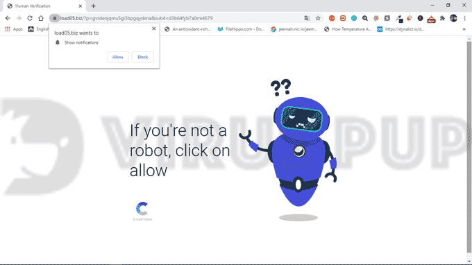 Load05.biz is a scam website that tricks users into subscribing for push notifications. Its methods are inspired by social engineering. Its page displays information that encourages users to click on the allow button. This button is for push notifications. When you click on it, you allow this website to send notifications on your desktop.
